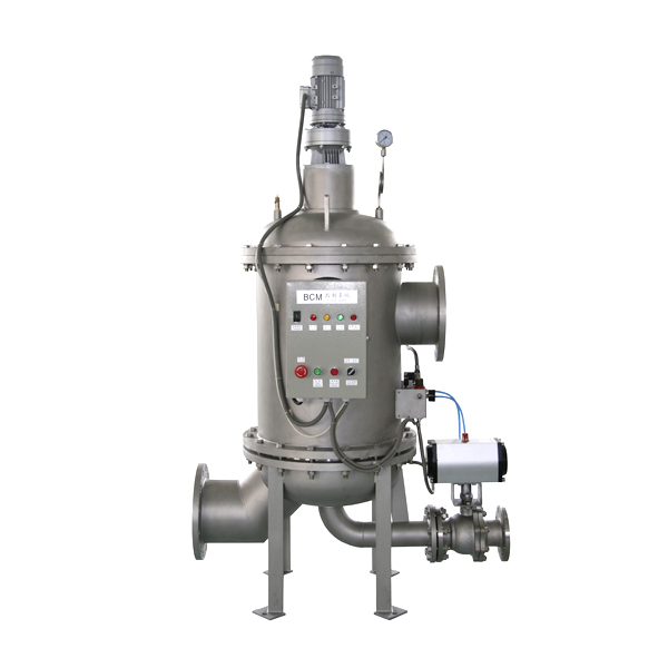 本实用新型是一种利用滤网直接截取水中杂质,去除水中悬浮物、颗粒物,降低浊度,净化水质,减少系统污垢、菌藻、锈蚀等产生,从而净化水质,保护系统其它设备正常工作的精密设备。由于智能(PLC,PAC)设计,系统能自动识别杂质沉积程度,给排污阀信号自动排污。